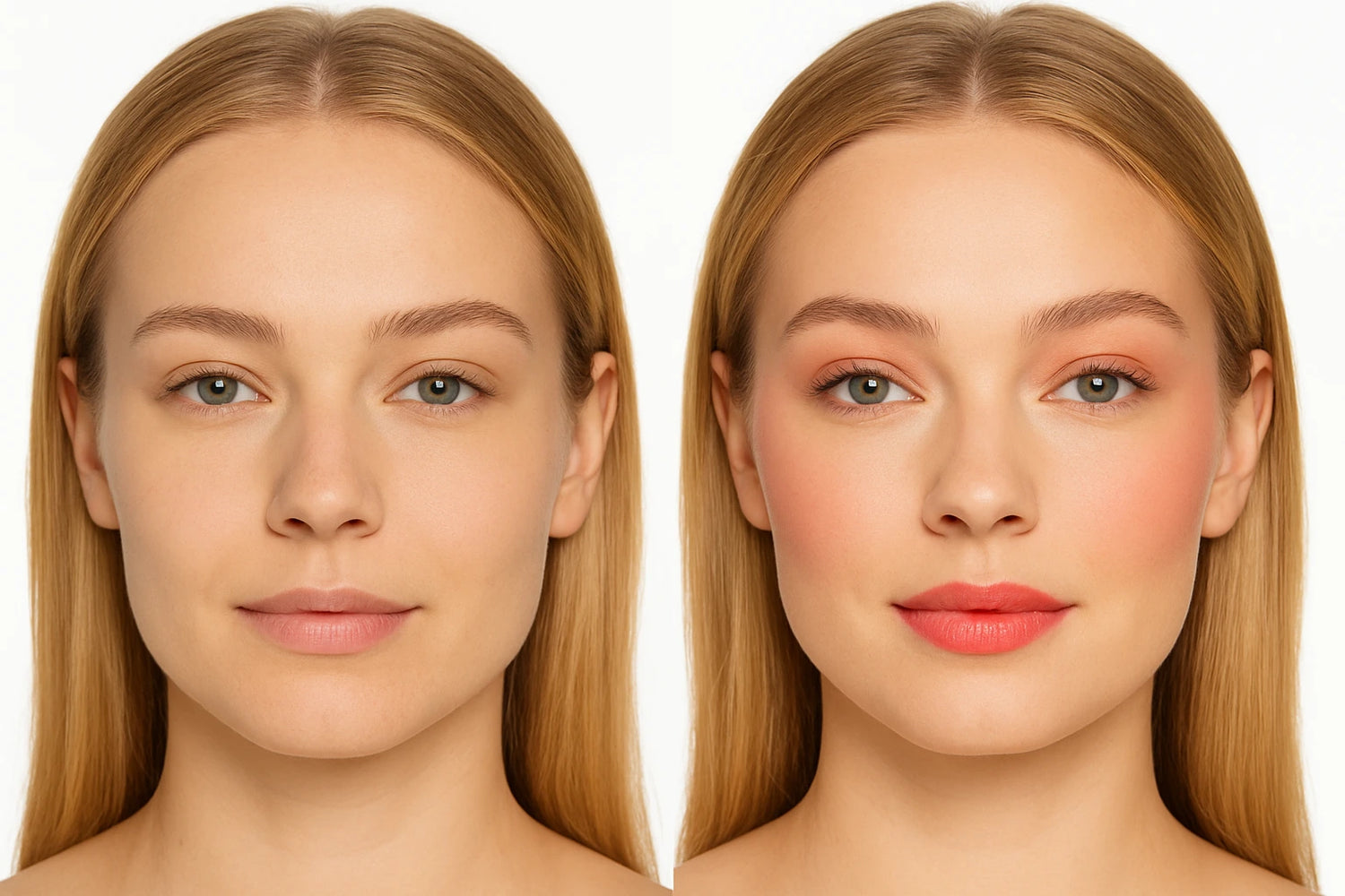 Maquillage express des yeux, joues et lèvres.